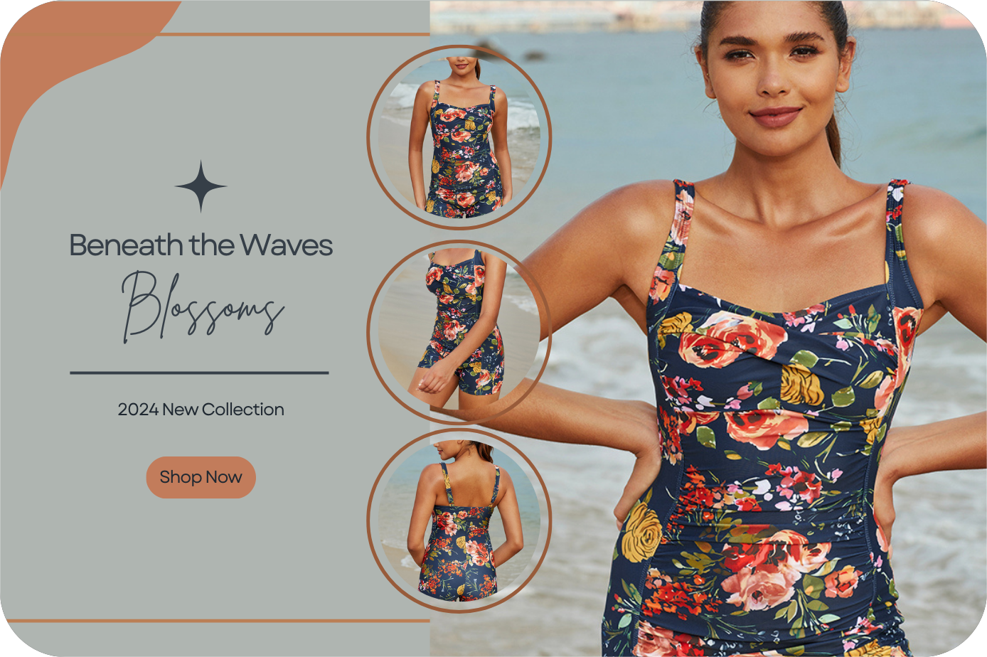 Imagine the deep navy of the ocean at twilight, now adorned with the enchanting hues of blossoms. The one-piece swimsuit is a canvas where flattering flowers bloom against the rich navy background, creating a mesmerizing spectacle that mirrors the beauty found beneath the surface.