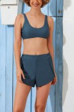• Solid Navy Bikini Top And HighWaist Elastis Boy Shorts